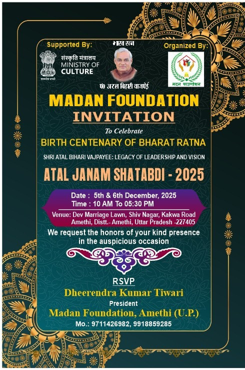 Ministry of Culture, organise birth centenary commemoration of Shri Atal Bihari Vajpayee with Madan Foundation, Amethi